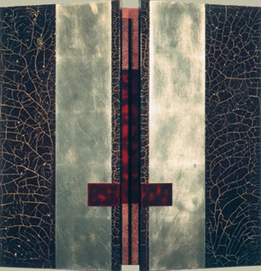 Holz, Blattaluminium, Sand, Reißlack, Farbe, Lack