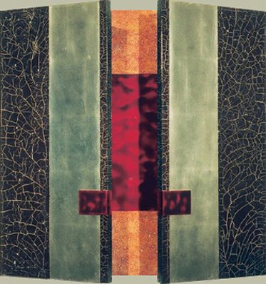 Holz, Blattaluminium, Sand, Reißlack, Farbe, Lack