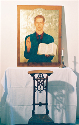 Altarsituation mit einem auf einem Podest aufgestellten Heiligenbild,